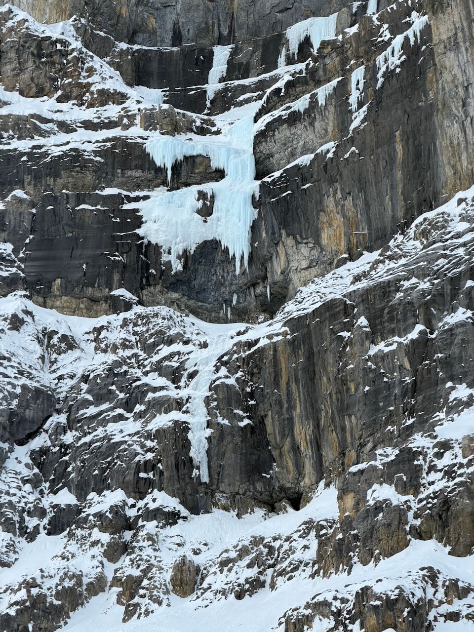 So, by chance, there was now a solid stretch of routinely formed but completely inaccessible WI5 that needed a mixed pitch for access. It’s been a couple decades since that was the case anywhere on the Headwall.